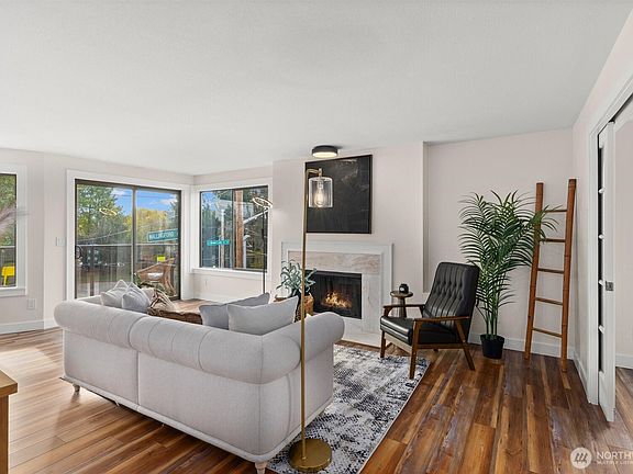 Rare, fully remodeled corner condo at Green Lake Vista—right across from the lake. Sun-splashed, open layout extends to a private balcony with park and water views—perfect for morning coffee and people-watching. New kitchen with sleek cabinetry, quartz counters and modern appliances; refreshed baths; new Luxury Vinyl Plank flooring, smart lighting; and a cozy gas fireplace. Generous primary suite with plenty of storage. Secure, boutique building with elevator, dedicated parking and low HOA dues. A+ Green Lake location: steps to the loop trail, cafés and shops; minutes to Hwy-99, I-5, UW, Downtown, the Eastside & Light Rail. Stylish, modern turnkey—urban lake living at its best; a smart investment and an easy place to call home.