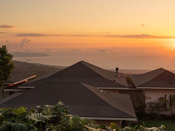Set in one of Kula’s premier Upcountry locations, this nearly 4,000 sq ft single-level residence showcases modern design, seamless flow, and commanding views of Lanai, Kahoolawe, and Molokini. Clean architectural lines, high ceilings, and expansive glass walls create a sense of openness while framing the panoramic ocean views. The thoughtfully designed floor plan centers around a spacious great room that connects the living, dining, and kitchen areas to an expansive lanai, ideal for effortless indoor-outdoor living and enjoying evening sunsets. The kitchen is a contemporary showpiece with custom cabinetry, stone countertops, and top-tier appliances, designed for both form and function. The spacious primary suite, located at one end of the home, features walk-in closets, dual sinks, and a private office entrance. Two guest suites are thoughtfully placed on the opposite side of the living space, ensuring privacy and maintaining the same standard of quality as the rest of the home with upper loft areas for additional space. The home includes three bedrooms and three bathrooms, along with a 1,100 sq ft garage that includes an office and storage, and a 600 sq ft auxiliary building suitable for a studio or other creative space. This contemporary home was designed with intention where every room connects to the land, light, and views that define Kula living.