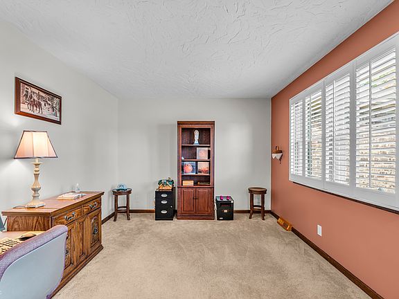 Looking for a home with flexibility, no HOA, and room for perfect work/home balance? Look no further! This all-brick ranch sits on a large lot with no HOA and includes a versatile outbuilding-ideal for a home-based business, hobby space, extra storage, or a recreation room. Inside, you'll find 3 bedrooms, 2 baths, and a dedicated office, offering flexibility to make the home truly your own. The eat-in kitchen opens to a spacious living room with a cozy fireplace, which flows into a large family room. Just off the French doors, enjoy a private patio with a gas grill hookup-perfect for entertaining or relaxing evenings. The formal dining room features custom built-in cabinets with granite countertops, making it an ideal space for hosting holidays and dinner parties. The outbuilding is fully equipped with electric, heating, and cooling, plus a phone landline. It's divided into three spaces: a large main room with built-in cabinets, a small storage area, and a flexible rear space that's perfect for tools, bikes, or yard equipment-the options are endless! The primary suite offers a private sitting area, laundry, and full bath with heated floors. An additional laundry hookup is conveniently located in the garage. You'll also enjoy peace of mind during storms thanks to the whole-home backup generator. The property features low-maintenance landscaping, mature trees, extra parking for guests, and a storage shed. Additional features include gutter guards and custom shutters throughout the home, both with transferable warranties. This home truly has it all-space, versatility, comfort, and peace of mind!