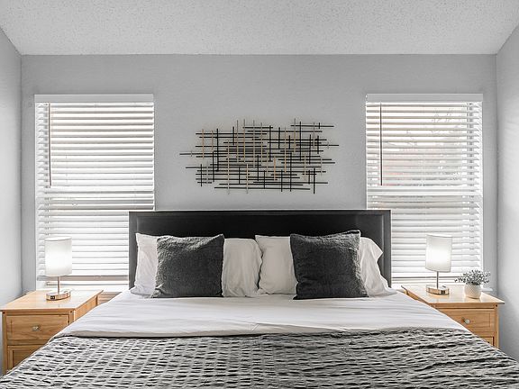 Step inside and be greeted by a bright, open-concept living area that's perfect for relaxing after a day of exploring. The cozy living room features plush seating and a large flat-screen TV for your entertainment. Adjacent to this space is a modern kitchen fully equipped with stainless steel appliances, granite countertops, and all the cookware you'll need to whip up your favorite meals.
