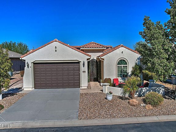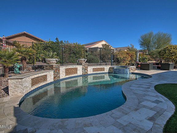 Meticulously upgraded 'Cambridge' model is perfectly appointed on a PREMIUM N/S FACING LOT overlooking a SPARKLING POOL and SOOTHING HOT TUB. Enjoy the extended travertine patio and courtyard, fenced yard, fire feature and beautiful mature landscape. As you enter your new home, take a moment to appreciate the numerous upgrades and details. Just a few of the benefits include a chefs kitchen w/staggered cherry cabinetry and antique bronze hardware, granite counter tops, tile backsplash, RO system, stainless steel appliances, ceiling fans, custom living room detail w/fireplace, first impressions security door leading to the courtyard, upgraded entry door and a SOLAR SAVINGS. A must see home, before it's SOLD!! Merrill Ranch also offers the Anthem Grille, The Poston Butte Golf Club, a learning center and all the festivities, activities and amenities a Sun City community has to offer. Remember you are buying a lifestyle that goes beyond the home's property lines.