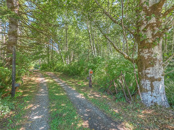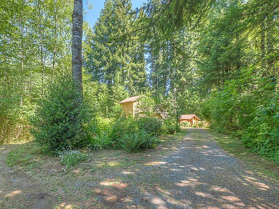 Unique, artist-designed home. Fairy-tale setting. Rustic fee 2w/wood floors, open log beam ceiling, river rock fireplace. Multiple levels, covered entry. Plenty of storage. Garden area, decks, mature landscaping around home, nestled in woods. Private feel. Majestic trees. Accessible riverfront famous for steelhead fishing. Jetted tub, heat pump, auto generator. New roof'05, new heat pump '09.