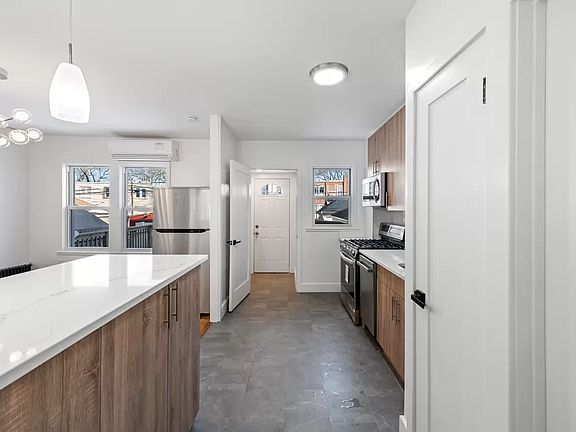 The best, most beautifully gut renovated new home to hit the Glendale market in years! This home was renovated from top to bottom with top construction and high end finishes. Highlights include central heating/cooling, stainless steel LG appliances, natural quartz stone countertops, marble baths, washer/dryer, finished basement, massive deck, new windows, new roofs, private garage parking, and so much more! Walk through your newly built front granite staircase into your entry foyer sunroom complete with full wall of windows perfect for a home office, kid's playroom, or entry mudroom. Large coat closet upon entering. As you pass through the sunroom into the main portion of the home, the open spaciousness of the living, dining, and open concept kitchen are sure to impress. The windowed oversized living room has ample room for the largest entertaining space. Flowing directly from the living room enter into your dedicated dining space with ample room for dining up to twelve. The kitchen is open to the dining with a massive kitchen island of single slab quartz stone with space for breakfast bar stools. This is a kitchen built for entertaining and top cooking - full suite of LG stainless stell full-sized appliances including refrigerator, five-range gas burner, dishwasher, and microwave. The quartz countertops and the custom oak soft close oak cabinetry are chic and spacious, complete with a subway tile backsplash. Flooring in the kitchen is an eye-catching porcelain tile. Upstairs are two spacious, king-sized bedrooms flooded with natural light, and a third bedroom ideal for nursery or home office. The brand new windowed bathroom has marble tiles and floors, soaking bath tub, and sink vanity. Downstairs there is an open, newly finished basement with plenty of space for entertaining, a home gym, storage, or children's play area, as well as a laundry room and new half bathroom. There are new oak wide plank floors throughout the home. All doors are custom with fine millwork and designer black hardware. All windows are double-paned and open top down and bottom up. Central AC/Heating high efficiency split HVAC system in the living room and every bedroom. The backyard has a newly built oversized wooden deck for summer grilling and entertaining, which leads to a recently landscaped backyard ready for a garden or planter's touch. A garage with a new roof accessible by the back clean driveway off 78th Ave. The house has a new roof, new updated electrical, new front doors, and updated with designer finishes from the studs to the roof. This home won't last long!