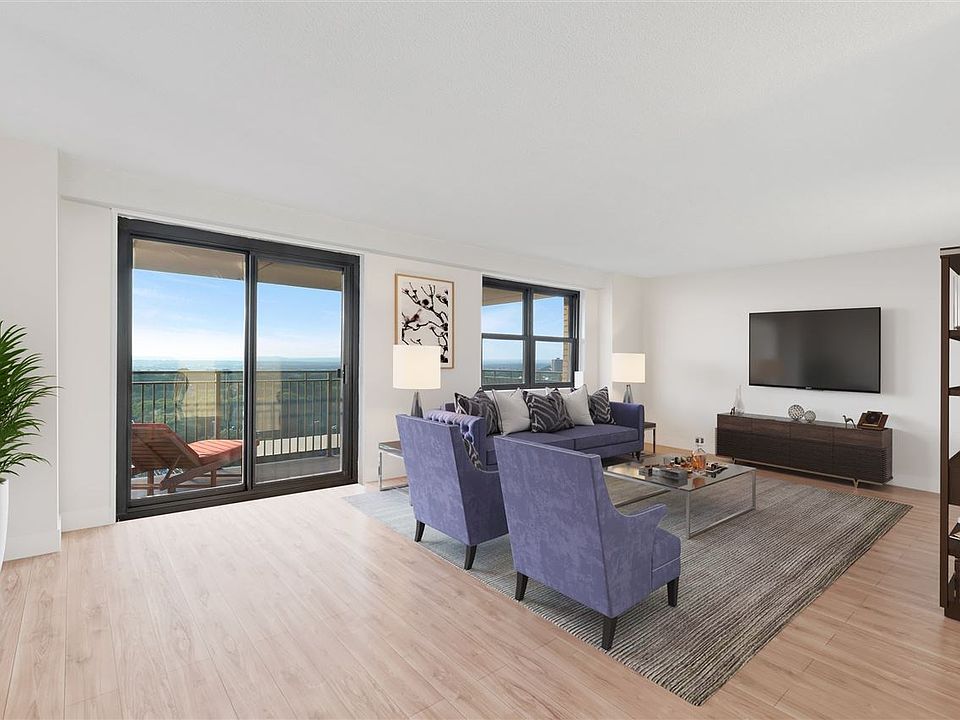 Immaculately kept and lovingly cared for 1 bedroom, 1.5 bathroom home with a huge private balcony now available at Parker Imperial. Every single foot of this 1,155sf residence captures incredible sunsets and wide-open blue sky views especially the 19ft wide west-facing balcony 20 floors above Boulevard East. Fully updated this year, residence 20-B features new bathrooms, new flooring and an oversized living room with a separate dining area. Perfect for entertaining! The kitchen is equipped with a brand new appliance package, new counters and refaced cabinets. Splendid as-is or prime for a new, open concept to blend into the living area. Need closet space? You'll never fight for storage space here! Not with 5 deep closets including 2 walk-ins in the vast master suite, where a California king bed can fit easily along with all the rest of your furnishings. Experience the Parker Imperial. A full-service condo building perched atop the Palisade cliff on beautiful Boulevard East. Monthly fees include deeded indoor garage parking, hot and cold water, outdoor pool, sun deck, sauna, fitness center, 24hr concierge, full-time superintendent, community room, and bike storage. Your pets are welcome here as well. Lobby renovations in progress and updates to roof, exterior, high-speed elevators and parking deck all completed within the last year. Live where it's all happening with quick and easy commuting options to Manhattan within a block, waterfront dining, shopping and entertainment all within a mile and gorgeous Braddock park across the street - a 167-acre lakefront, Clifftop park with NYC views, 45 sports facilities, running trails & a dog run.