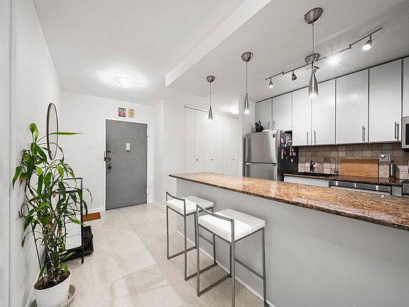 Wake up to skyline views in the serene primary suite, complete with an upgraded ensuite bath and walk-in closet. A large second bedroom, also with NYC views and a generous closet, adds flexibility. A second upgraded bathroom sits just outside the second bedroom. Glass sliders open to a private balcony ideal for relaxing, dining al fresco, and soaking in the dazzling city and river vistas. Smart lighting enhances the living space for modern convenience.