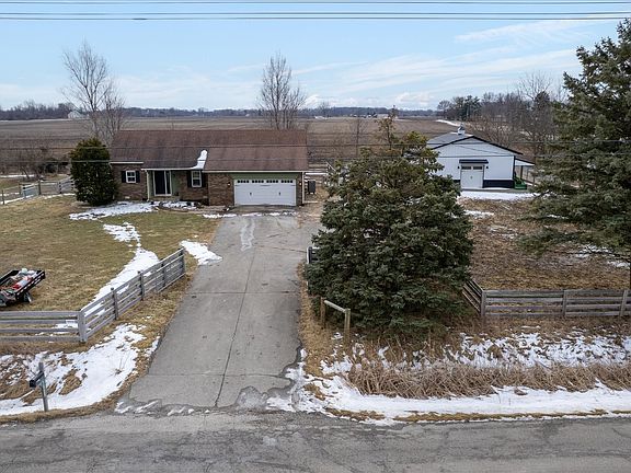 WELCOME HOME. Make this cozy property your next mini farm. Bring your animals and create your very own homestead. This recently UPDATED 3 bedroom, 2 full bath brick ranch offers a serene county lifestyle with close access to highways, restaurants, & shopping. TWO Barns 2023: Barn #1 Lester Pole Barns 24x32, two 12x12 stalls w/dutch doors, add'l stall, storage & tack room. 2 lean-to's on each side of the barn, Barn #2 by Raber 10x16 w/2 access doors, professional dry lot & wash area. UPDATES include: New 2025 Pella sliding patio door, 2024 (TWO) 200 amp electrical panels, 2024 HVAC Heat Pump & AC, 2022 Water Heater, 2022 Well Pump & Septic Riser, Roof approx 6 years old, updated vinyl windows. In 2022 the seller remodeled the entire kitchen (Cabinets, Appliances, granite countertops/backsplash, Luxury vinyl plank flooring throughout, baseboard & window trim, doorknobs, BOTH full bathrooms updated, sliding barn doors, service doors, garage door/ opener, & lightening throughout. Exterior Updates include: new gravel, landscaping, tree removal, complete perimeter fencing with front gate, and livestock track fencing systems. The laundry/mudroom has been extended into the garage to create a large space and could be modified back to a full 2-car garage. (SQUARE FOOTAGE IS AN ESTIMATE- BUYER TO VERIFY) See Property Updates Sheet