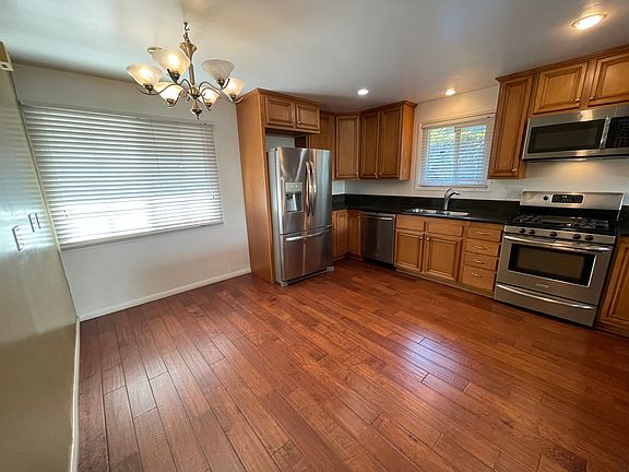 **Tri-Level Home for Lease in El Dorado Park Estates** Discover a stunning tri-level gem in the heart of El Dorado Park Estates, perfect for families or those who love to entertain! Step inside to gleaming wood floors that exude elegance and flow seamlessly through the main living areas. The main level boasts a spacious living room filled with natural light, a beautifully remodeled kitchen with a cozy breakfast nook, and a view of the inviting backyard. Step outside to enjoy the covered patio and above-ground spa ideal for relaxing or hosting weekend gatherings. On the lower level, you'll find an oversized den/family room with all new vinyl wood floors, a large bedroom, a remodeled bathroom, and a convenient laundry room. This level offers versatility, making it perfect for guests, extended family, or even a private office space. The top floor features two luxurious master suites. The rear master is a serene retreat with plenty of light, a private bathroom, and ample closet space. The front master suite combines two rooms into a grand space, offering a walk-in closet, remodeled bathroom, and enough room for a home office or sitting area. Stay comfortable year-round with central heating and air conditioning. Outside, the backyard is a private oasis with lush grass, a concrete patio, and a gated side yard perfect for kids, pets, or extra storage. Parking is a breeze with an attached two-car garage and a spacious driveway. Located within the sought-after boundaries of the newly rebuilt Newcomb Academy, this home is just a short walk to school and close to parks, shopping, and dining. Don't miss out make this gorgeous home yours today! Tenant pays all utilities.
