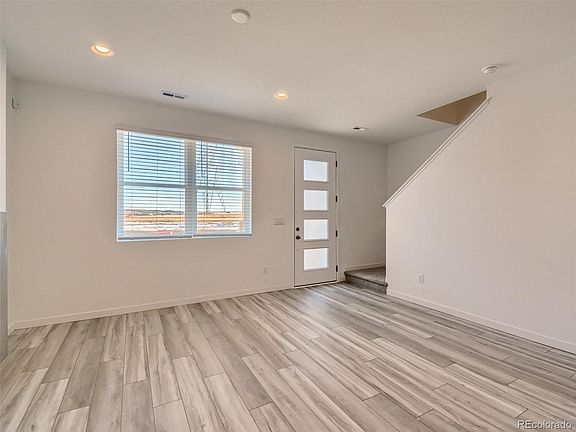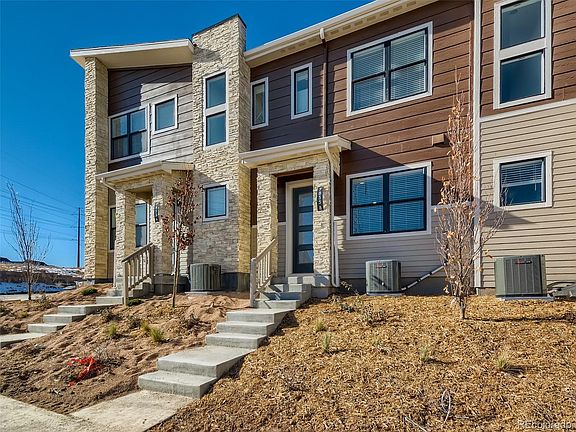 Brand new MOVE-IN READY townhome located next to open space in Sterling Ranch!  This 'Modern Colorado' two-story townhome features a contemporary linear fireplace in the living room, 9' ceilings on main AND upper level, large upper level laundry room, and walk-in closets in both secondary bedrooms.  Stunning kitchen features 42" painted white cabinets, granite countertops, tile backsplash, and stainless Whirlpool® appliances including gas range. Owner's bedroom features a walk-in shower with bench and oversized walk-in closet! Enjoy amazing community amenities and 30 miles of trails right outside your front door!