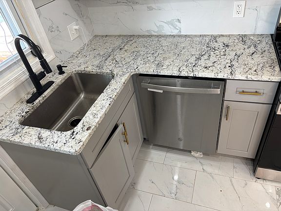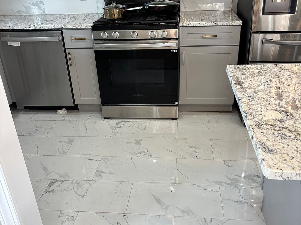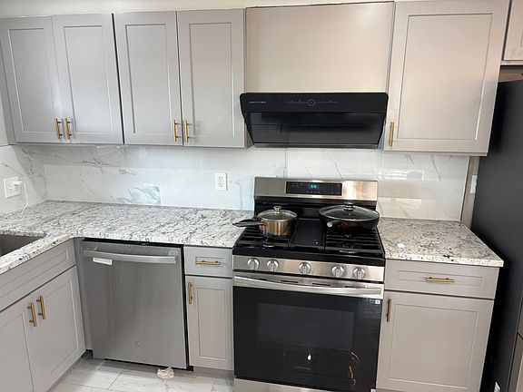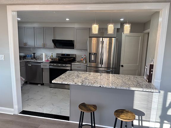 Beautiful end of row house with big yard . Newly renovated modern home , New Vinyl Flooring , Painting , updated kitchen with island and granite countertops , finished basement . Modern lightings , recessed lights . New appliances includes new French door refrigerator new Samsung washer and dryer . property has force air central heating and air conditioning. Property has a front porch and a back porch patio with roof that can be walk out from kitchen . Property has new roof .