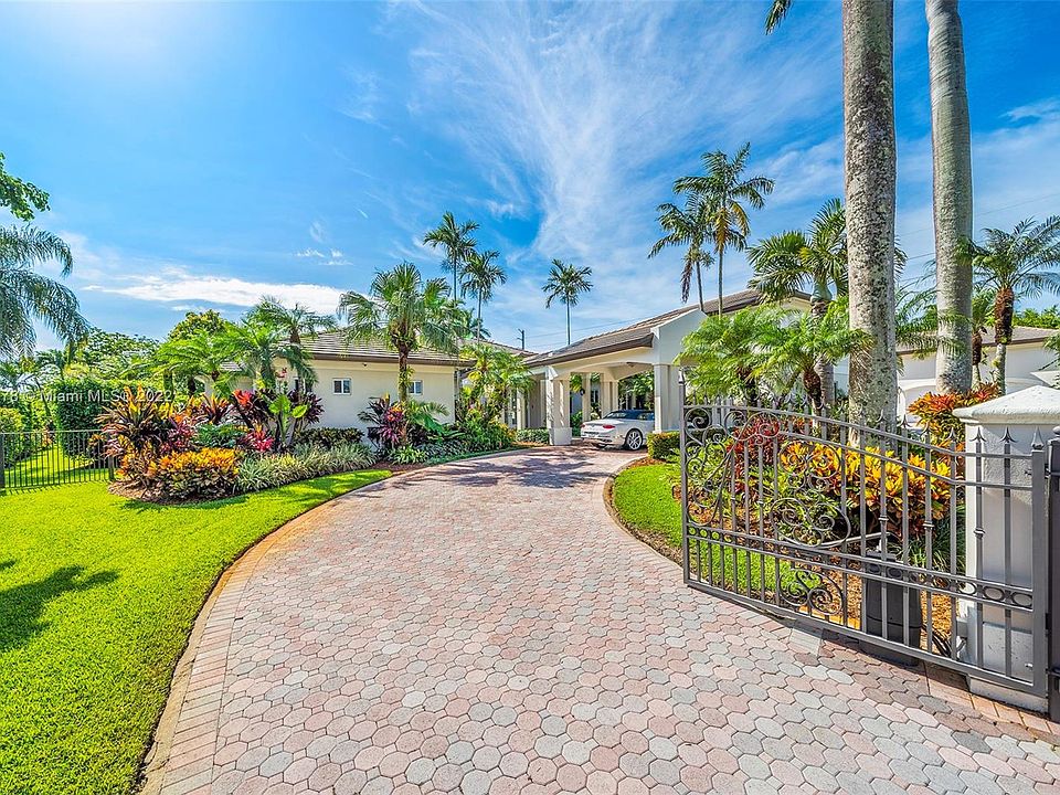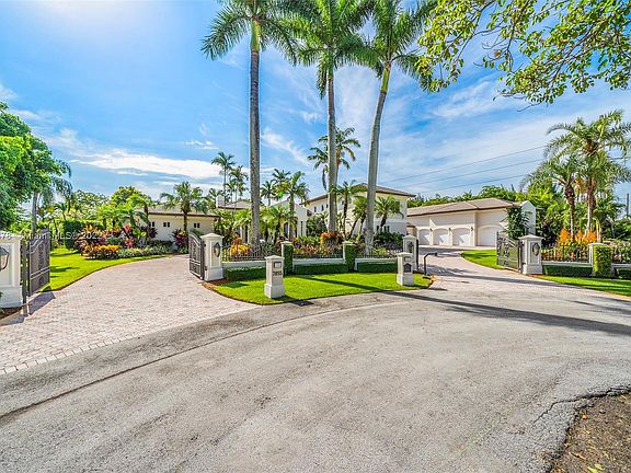 Discover this compound on a cul-de-sac near Baptist Hospital complete with 7 door 15 car air conditioned garage with automatic lifts. This estate suits a multi-generational family with 5/5 in the main home plus a full 2/2 apartment featuring a living room, & kitchen. The master suite overlooks the landscaped gardens & boasts fine finishes, high ceilings, artfully appointed walk-in closets, separate gym and magnificent onyx bathroom with double sinks, spa tub & shower. Live & entertain indoors and out with a theatre that seats 11, a walk-in 500 bottle wine cellar & bar, billiard room, tennis court, pool, & patio with summer kitchen. A tropical oasis with landscaping of varied blooms and assortment of mature palms that frame this extraordinary 53,291 sf lot.