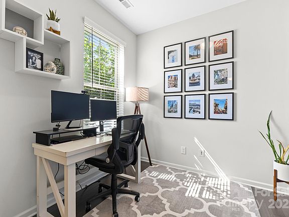 Be at the center of everything! This beautifully maintained 2-bedroom, 2.5-bathroom townhome offers over 1,500sqft of living space. Located just minutes from South End, SouthPark, Ballantyne, & Uptown, this home puts you right in the heart of it all. With Arrowood Light Rail Station nearby, you're only a short ride away from soccer matches, football games, & more! Enter through the lower level, where you'll find a versatile office or gym. Enjoy a 2 car garage w/ample storage.Upstairs, the open-concept living area features 10ft ceilings and a chef’s kitchen w/gas range, double oven, and subway tile backsplash-ideal for entertaining. Gorgeous 5-inch engineered hardwoods throughout the space and a large granite island provide both function & style. Enjoy your morning coffee on the back deck, as the city comes to life. Upstairs, the spacious owner’s suite and additional bedroom await. Hadley at Arrowood offers a peaceful retreat w/a community pool, gas grills, sun loungers, & cabanas.