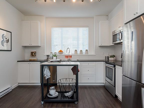 Welcome to Queens Forest Hills by Dawson + Sawyer! This beautifully designed 3 bedroom, 3 bathroom townhome offers generous living space and exceptional functionality. The home features a spacious L-shaped kitchen. A true chef's delight, along with bright, open living areas perfect for entertaining or everyday comfort. Upstairs, you'll find two large bedrooms, each thoughtfully laid out for privacy and flexibility. Centrally located close to schools, parks, shopping, restaurants, transit, and major commuter routes, this home delivers the perfect balance of convenience, style, and room to grow. Experience exceptional value in one of Surrey's most connected and desirable neighbourhoods.