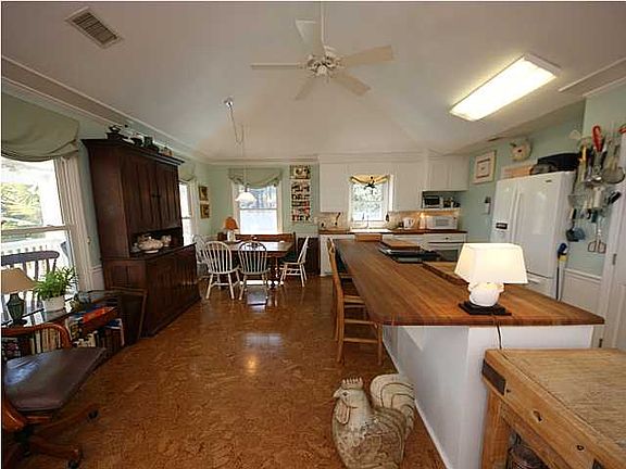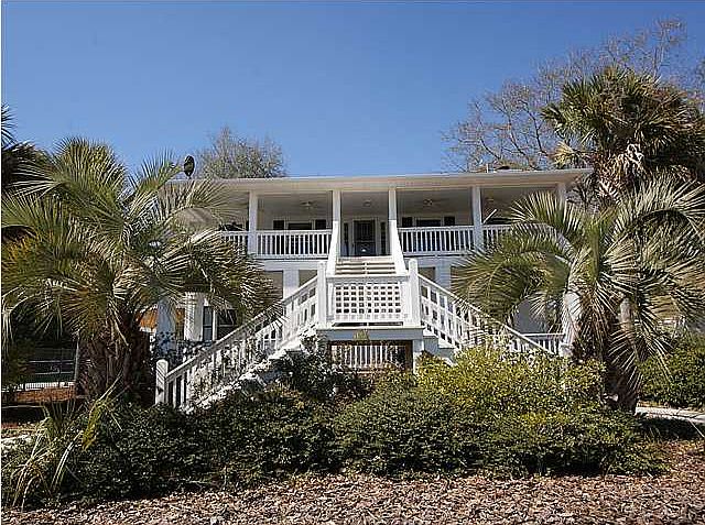 This beautiful elevated low country home is in a peaceful gated waterfront community on the Intracoastal Waterway. The large yard has gorgeous oak trees and is beautifully landscaped, which offers a park like setting. A full-width large front porch with ceiling fans welcomes you and will sure to be a favorite spot for your morning coffee as you take in the views of Bulls Bay and the Intracoastal Waterway. Entering the home you will find a bright open floor plan with a spacious kitchen, dining room, and family room as well as many windows to take in the beautiful views and natural light. The kitchen features a large island with sitting space, cherry countertops, tile back splash, lots of cabinet and counter space, under cabinet lighting, spacious eating area, a pantry, cork floors, and vaulted ceiling. The family room includes elegant bead board, vaulted ceiling, a fireplace, nice crown molding and trim, and beautiful hardwood floors. Adjacent to the family room is the dining room decorated with architectural columns, hardwood floors, and crown molding. There are two nice size bedrooms with ceiling fans and two full baths as well as a spacious utility room on this level. Downstairs you will find an amazing private guest suite. This suite has two private entrances, covered porches with ceiling fans, easy access to the fenced-in large in-ground swimming pool, a single car garage, and workshop that is heated and cooled. The suite features a full kitchen with pantry, large family room with tray ceiling, two bedrooms with his/her closets, and a full bath with dual vanities as well as a utility closet with washer/dryer connection. There is also a detached 2-car garage, which includes a garden shed with painted floor and walk-up storage space. Other home features include instantaneous water heater, new compressor heat pump, 7-day thermostat timer, and new concrete driveways with circle drive in front. A short walk away is the community deepwater boat landing, covered pier head and dock where you can catch blue crabs and throw in your fishing line. Capers and Bulls Island are just a 10-minute boat ride away! You will have the best of both worlds living in the heart of the Cape Romain Wildlife Preserve surrounded by Francis Marion National Forest with only a 25-minute drive to Mt. Pleasant shopping. A wonderful place to call home!