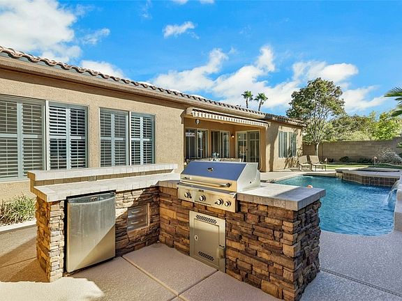 Welcome to this stunning newly remodeled single-story home in the desirable Nevada Trails community of Las Vegas. This beautiful home features an open floor plan, high ceilings, and elegant finishes throughout. Step outside to your private oasis with a sparkling pool, relaxing spa, outdoor kitchen, and lush landscaping, perfect for entertaining or relaxing. The chef’s kitchen offers large quartz countertops, while the primary suite provides a peaceful retreat with a luxurious oversized shower. Newly installed luxury vinyl flooring adds a modern touch. Located in a quiet neighborhood near schools, parks, and amenities, this home offers comfort, privacy, and convenience. Schedule your tour today! All furniture is negotiable.