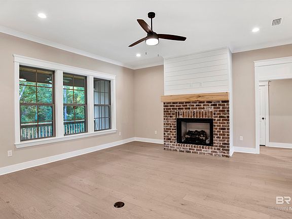 UNDER CONSTRUCTION * Welcome to the Riverwood plan, a thoughtfully designed single-story home by Tower Homes offering 4 bedrooms and 3 full bathrooms. Step into an open-concept layout where the spacious living room with gas fireplace flows seamlessly into the gourmet kitchen, complete with a walk-in pantry, custom-crafted white cabinets, quartz counter tops, stainless appliances, a large, accent color painted center island, and breakfast nook. You will love the grand feel of the formal dining area with a 12-foot ceiling and large windows allowing for a lot of natural light. Access to the covered back porch is perfect for indoor-outdoor entertaining overlooking the large backyard. The primary bedroom suite is tucked away for privacy and includes 2 generous walk-in closets and a spa-like en suite bath with dual vanities, a large, tiled shower with a seat, and a freestanding soaking tub. Three additional bedrooms are well-positioned across the home, with one offering a private full bath?ideal for guests or a home office setup. A dedicated laundry room, ample storage with multiple linen closets, and a two-car garage round out this smart and stylish layout. Experience quality craftsmanship and convenience in the Riverwood plan, crafted for modern living and timeless appeal. Located in Timbercreek, residents enjoy resort-style amenities, including pools, tennis courts, playgrounds, & access to one of the area's top-rated golf courses all just minutes from I-10, shopping, dining, & the beautiful Gulf Coast. Gold Fortified, the home includes a 1-year builder warranty, 10-year PWSC structural warranty, & a 1-year Termite bond with Formosan coverage. One or more principals of the selling entity are licensed real estate agents and or Brokers in AL. Est. Completion Aug 2025* Floor plans are for example only. Buyer to verify all information during due diligence.