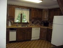A must see! Waterfront property on Lake Fort Scott, 1 1/2 story A-Frame with an awesome view. Central heat and air, vaulted ceilings, stone woodburning fireplace in great room, total electric. Basement has family room, fireplace, storage room/shop, 1 car garage. Side entry porch, deck, patio, frame boat house, boat dock, concrete stairs from top of hill, 3 car detached garage with attached carport, lots of concrete landing and driveway, no wake zone.
