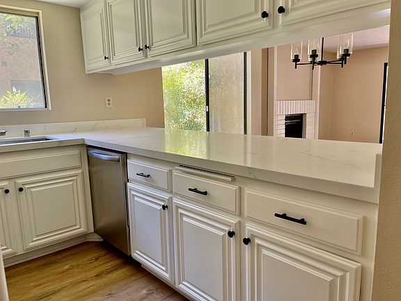 Thoughtful design and modern finishes are uniquely embodied in this remodeled first floor end unit located in the beautiful 55+community of Oaknoll Villas in the highly desired Thousand Oaks. Every detail was carefully selected in this remodeled home. Highlights includes newer stainless steel appliances and farmhouse sink, recessed lighting, quarts counter tops, LVP flooring throughout, upgraded bathroom, scrapped ceilings and extended kitchen counters to create counter top seating. Energy efficient vinyl windows and patio door installed July 2021. Sliding glass doors lead to a spacious patio. Resort style living with a clubhouse, game area/library with fireplace, banquet/meeting room, fully equipped kitchen, fitness center and more. The amenities continue outdoors with walking/biking trails throughout the community's greenbelts, BBQ, pool/spa and shuffleboard. You'll also love the convenience of your own near by covered parking spot, and a great neighborhood near it all with freeway access, shopping and restaurants minutes away.