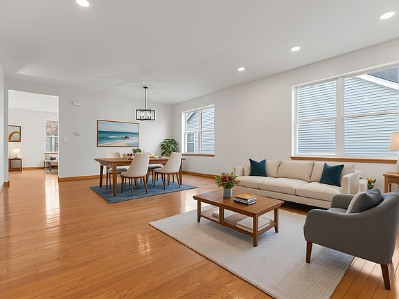 Modern tiled foyerCenter islandGreat curb appealGleaming hardwood floorsCharming front porchQuartz countertops and backsplashAll new lighting