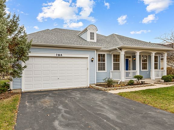 Be prepared to fall in love with this beautifully maintained 2-bedroom , 2-bath ranch located in the highly sought-after 55+ community of Steeplechase. From the moment you arrive, you'll appreciate the great curb appeal including a charming front porch, perfect for relaxing and enjoying the neighborhood. Inside you'll find a modern tiled foyer that leads into a bright, open floor plan filled with plenty of natural light. This home offers 9 ft. ceilings, 6-panel doors, and new designer hardware throughout. The spacious living and dining room combination features gleaming hardwood floors, creating an inviting space for everyday living and entertaining. The large family room is open to the well-appointed kitchen which includes quartz countertops and backsplash, a center island, 42" dark maple cabinets, a pantry closet, a stainless steel stove and dishwasher and a new stainless sink with a black faucet. A versatile den at the front of the home offers the perfect space for an office, hobby room, or cozy reading nook. The extra-large primary bedroom easily accommodates a sitting area and includes an expansive walk-in closet. Its beautifully tiled en-suite bath features a rare, and highly desirable no-step shower along with a new water-saving toilet. The second bedroom and additional full bath are ideal for guests. The guest bath has been completely updated to incude a new vanity,new designer faucets, a water saver toilet and beautiful step in shower with large subway tile surround, You'll also appreciate the large laundry room with wash tub and storage closet, plus a concrete crawl space-perfect for additional storage needs. Step outside to a large patio overlooking mature landscaping with an open view to the conversation area, offering a peaceful setting for outdoor dining or simply unwinding. Enjoy low-maintenance living with low HOA fees and no Master HOA fees. Gather in the well appointed clubhouse,at the pool in the summer and keep fit in the excersise facility which are all a part of the community. Scenic walking paths wind throughout the community, adding to its welcoming atmosphere. The home has been freshly painted throughout,has all new lighting,new cabinet hardware, and a new patio door. Also include the hot water, roof, furnace and AC that have been replaced within the last 5 years. All of this is just minutes from shopping, restaurants, parks, and a golf course, -everything you're looking for in a 55+ community!