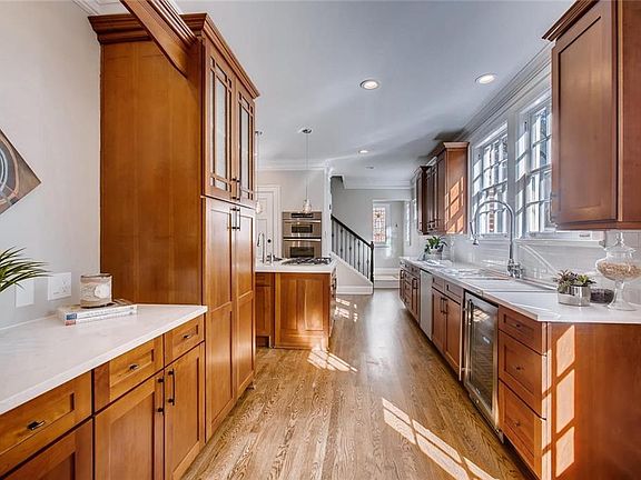 - Kitchen Features: Breakfast Bar, Cabinets Stain, Eat-in Kitchen, Pantry, View to Family Room, Kitchen Island, Solid Surface Counters, Keeping Room