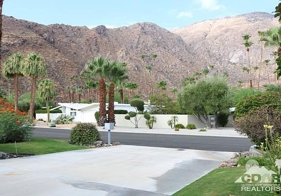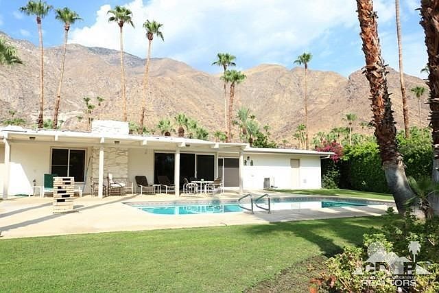 Vista Las Palmas 1958 Mid-Century Gem on a huge 16,988 square foot lot. Tons of potential and ready for your updates or renovation. Incredible location and mountain views looking directly at The Dry Falls. Three bedrooms / two bathrooms / 2,046 square feet / original stone fireplace / beams with tongue and groove ceilings / two car garage / pool / lots of windows.