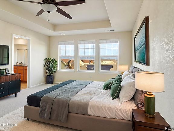 - Description: En-Suite Bathoom, Tray Ceilings, Ceiling Fan, Carpet Flooring