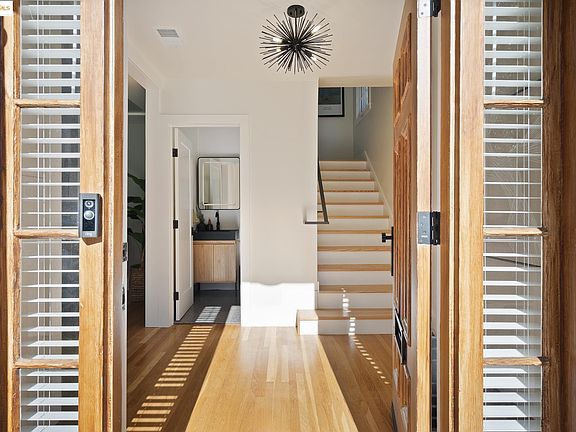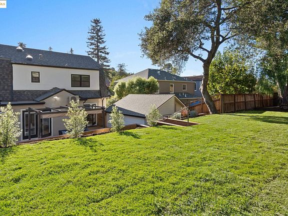 Renovated Crocker Highlands Dutch Colonial on double lot. Open kitchen with designer quartz counters, Janska 6 burner commercial range, pot faucet and stainless appliances. Adjacent dining area and separate den space located off kitchen (both with doors flowing onto rear decks and rolling grassy yard). Built-in Sonos speakers in the dining and living room, plus two half baths located on the main level of the home. All bedrooms located upstairs including the primary suite, hall bathroom and convenient laundry closet. Recent system updates include new electrical, 30 year roof, front and rear facing windows, HVAC+AC with Nest Thermostats, Mini-Split heating in den w/AC, EV charger and video security system. Entire house is both cable and HDMI wired. The lower level of the home offers ample room for storage and the detached two-car garage is a perfect flex space ripe with opportunity. Located just blocks from the award-winning Crocker Highlands Elementary, wonderful shops and restaurants of Lakeshore Avenue, Saturday Farmers Market, the historic Grand Lake Theatre, beautiful Lake Merritt and offering quick Bay Bridge access to San Francisco.