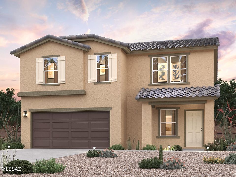 Welcome to your dream home in the Entrada Del Toro! Introducing the Troon Plan! This thoughtfully designed two-story home offers a perfect blend of functionality and style. The main level features a spacious great room, a well-appointed kitchen with granite counters, stainless steel appliances, an island, along with an elegant dining area ideal for entertaining. A versatile flex space can be adapted to suit your needs, while the 2-bay garage provides ample storage.Upstairs, the primary suite is a serene retreat, complete with a walk-in closet and an en-suite bathroom featuring a double vanity. Two additional bedrooms offer generous space, with one including a walk-in closet.