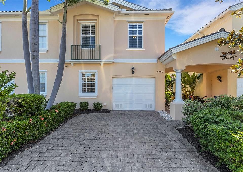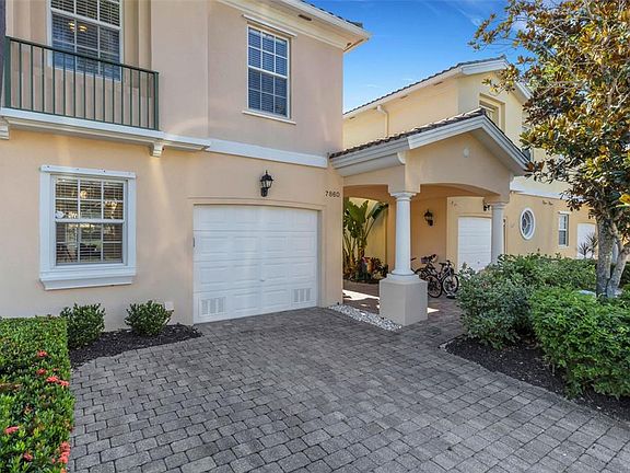 Beautifully updated and meticulously maintained, this 3-bedroom, 2.5-bath Catalina model townhome in the coveted community of VillageWalk offers an exceptional blend of indoor-outdoor Florida living. Set on a quiet, tree-lined street, this two-story residence features its own private heated pool, resurfaced with Pebble-Tec finish and new tile for a fresh, resort-style feel — all surrounded by lush landscaping and peaceful greenery views that enhance both privacy and tranquility. Inside, you’ll find an open and inviting floor plan designed for modern living. The stylish kitchen has been thoughtfully updated with stainless steel appliances, quartz countertops, and a modern sink and fixtures, offering both functionality and flair. The kitchen opens seamlessly into the spacious great room, where sliding glass doors lead to your private screened lanai and pool deck — perfect for entertaining, relaxing, or simply enjoying the beautiful Florida weather year-round. Upstairs, a well-designed split-bedroom layout provides comfort and privacy for all. The spacious primary suite overlooks the greenery and features two closets (including a walk-in) and a beautifully appointed ensuite bath with granite dual vanities, a soaking tub, and separate shower. Two additional bedrooms — one with a walk-in closet — share a full bath, also updated with granite surfaces to match the home’s cohesive aesthetic. Additional highlights include central vacuum system, a half bath downstairs, an interior laundry room with cabinet storage, hurricane shutters, a Google Nest thermostat, tile roof, under-stair storage, and an attached one-car garage. Located within the award-winning, gated, and maintenance-free community of VillageWalk, residents enjoy resort-style amenities: a lap pool, lagoon pool, state-of-the-art fitness center, six Har-Tru tennis courts, pickleball, basketball, bocce ball, and miles of scenic walking and biking trails across over 500 acres of manicured grounds. The charming Town Center includes a café, bar, salon, gift shop, meeting space, on-site gas station, 24-hour guardhouse, and a full calendar of clubs and social events — providing a vibrant and welcoming lifestyle. All this, just minutes from Siesta Key Beach, Legacy Trail, top-rated schools, and all the culture, dining, and recreation that Sarasota’s Palmer Ranch has to offer. Whether you're seeking a full-time residence or a seasonal retreat, this exceptional home delivers the best of Florida living. Furnishings area available for purchase under a separate contract.