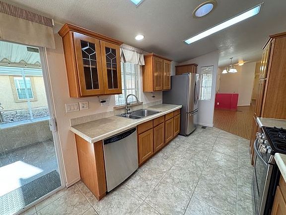 Welcome to The Bay at the Voyager Resort, an age qualified 55+ active and vibrant community, where you can find yourself in your dream home. Here is a beautiful 2006 Cavco New Haven home with 1,456 sq. ft with beautifully designed living space. This home features an open floorplan with 2 bedrooms, den, 2 baths, a large Galley Kitchen, inside laundry, screened in patio, mature landscaping, and a relaxing private rear yard. This home offers the perfect blend of modern amenities and timeless charm. This is a rare opportunity to own a home that has an attached RV Port with full hook-ups. It is a substantial structure to protect your RV ""home away from home"" investment"". It will fit a 42' RV and still have patio space at the rear of the RV. Step inside to find beautiful wood laminate floors throughout the home, Shaker Style cabinetry, and newer Stainless-Steel kitchen appliances. This ideal split bedroom floorplan is ideal for entertaining guests. The expansive primary suite and bath have a 2-sink vanity, large corner garden tub, and a walk-in shower. The home is climate controlled by a powerful, 3-year-old Rheem Gas Pack HVAC system. The home is also equipped with a whole home water filtration system, and a newer Architectural Shingle Roof. This home comes partially furnished. For outdoor enjoyment, there is a spacious screened patio overlooking the beautiful rear private yard with mature landscaping and trees. There are no rear neighbors. For the hobbyist, the extra-large storage shed can double as a workshop. There is an additional large storage shed in the rear yard for all of one's storage needs. This home is conveniently located to shopping, dining, and easy freeway access just minutes away. Whether you are looking for relaxation or recreation, this vibrant resort community has it all. Call us today for a tour of this home.