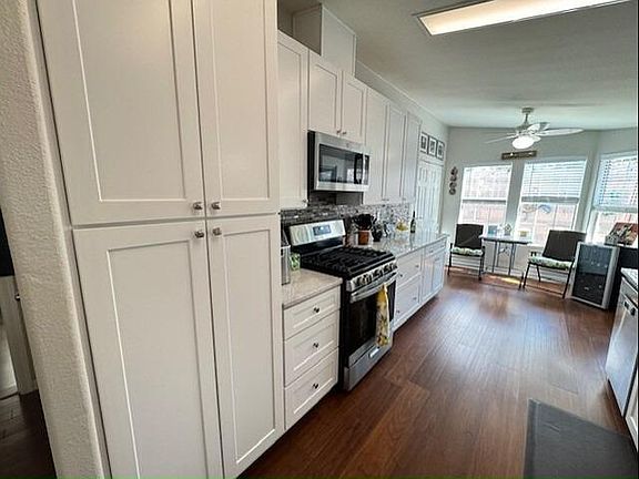 Open floor planSplit bedroom floorplanGalley kitchenPrimary suiteShaker style cabinetryTile backsplashPrivate rear yard