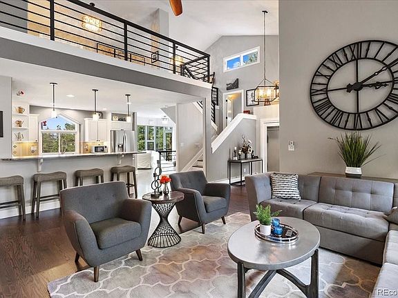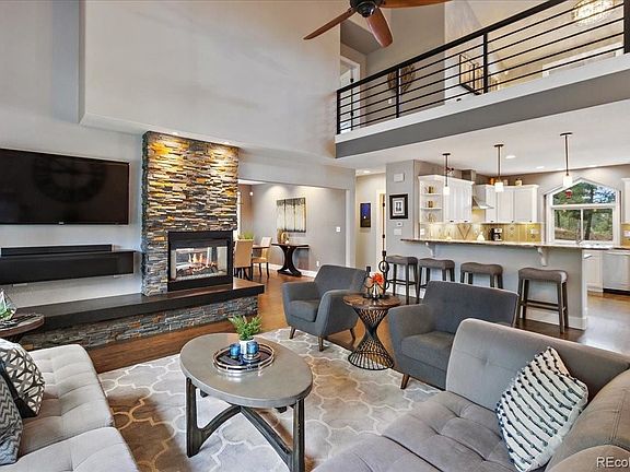 Situated on a private one acre corner lot with towering pines & views of Pike National Forest, this gorgeous home has it all! This open floor plan has many places to entertain & enough room to retreat to privacy with each bedroom on its own level. A dual-sided fireplace in the living room emits enough heat for the whole house & was recently updated with slate stone & a custom black granite hearth. The spacious kitchen features a gas stove, stainless steel appliances, granite counters, a pantry, beautiful ship-lap walls & a gorgeous sun-room. Interior features include refinished hardwood flooring throughout the main level, custom lighting, new trim throughout, newer windows & doors, cross-reeded doors at the entry & upper level, custom interior paint, plantation shutters, a custom staircase railing, & hand-scraped hickory engineered hardwoods on the upper & lower levels. Upstairs, the large master suite features a gas fireplace, walk-in closet, & 5 piece bath. The loft area is perfect for a study. The bonus room over the garage could be used as a fourth bedroom. The professionally finished basement offers additional living space including a recreational room, brick veneer accent walls, a custom wet bar, a bedroom with a 3/4 bath, & a large laundry room with a utility sink & folding station. Exterior features include a newer roof, a three car finished garage, two gas lines, a 220V for a hot tub, & three decks to choose from to watch the gorgeous Colorado Sunsets. The Red Rock in the backyard is Lyons Sandstone, a geological layer formed during the Paleozoic Era, Middle Permian Period about 250 million years ago. Located between Denver & Colorado Springs, just 20 minutes south of Castle Rock, this beautiful home offers the relaxed atmosphere of a remote Colorado lifestyle while still being close to amenities & trails such as Sandstone Ranch, Dawson Butte, & Spruce Mountain. Just a short (golf cart) distance to the award winning Perry Park Country Club and Golf Course.