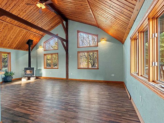 Tucked on 4.68 acres, this one-of-a-kind custom retreat blends warmth & nature. Step into the expansive vaulted living room and open kitchen, featuring repurposed beams, cozy woodburner, large sun-filled windows, custom cabinets and a huge granite island perfect for gathering during the Holidays. Enjoy in-floor heat, Marvin windows, tile floors, walkin tile shower & custom touches throughout. Home offers 3 bedrooms and 2 full baths, including a peaceful main-floor primary suite with a soaking tub and walk-in closet. 3rd bedroom offers elevated views of the property’s peaceful landscape. Wander quiet trails, enjoy hunting, 44x23 outbuilding, barn, & chicken coop. The Machickanee Forest offers year-round recreation just across the road. Your private haven awaits! Showings start 11.28.25