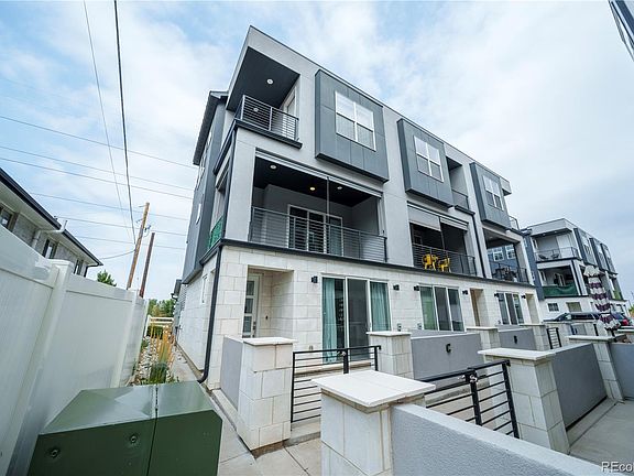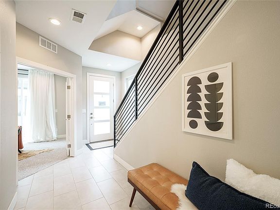 Tucked away literally next to the InterUrban Parkway Trail system connecting you to the Greater Denver Metropolitan area, this wide end unit townhome has expansive views of the mountains to the west, as well as to the north overlooking the park, community garden and the iconic Olde Town Arvada Water Tower. Welcome home to your perfectly situated 3 bed 4 bath home which sits a short bike ride to the best restaurants and entertainment as well as a quick commute to Denver, Lakewood or Golden. Or if you want to stay home and host, this place has it all, from a stone clad sunny patio off of the guest bedroom/office/gym, the covered deck off of the living room kitchen, or hang out and play games out of the oversized garage next to the park. All providing lots of space to entertain. If a chill day is what you are looking for, this place provides. The well appointed primary suite has all the space you would want for a relaxing experience with private balcony, walk in closet, en-suite bathroom and a laundry room. This modern and energy efficient property comes with elevated finishes with appliances from Frigidaire Gallery, bathroom fixtures from Kohler, Carrier HVAC and a Navien tankless water heater. If you travel a lot and want to make use of your property investment, this place allows short term and long term rentals giving you all the options as a homeowner and investor.