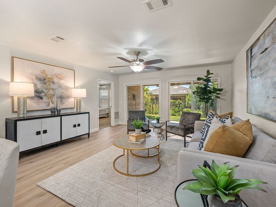 Step into this beautifully updated Gray Myst floorplan featuring 2 bedrooms, 2 baths, plus an office in one of Frisco’s most desirable active adult communities. Unlike many dated homes on the market, this home truly stands out with modern upgrades throughout. Enjoy fresh interior paint in today’s designer tones, wood vinyl flooring paired with plush new carpet, new blinds, quartzite countertops and backsplash, white cabinets with new hardware, completely renovated showers with a sleek, spa-like feel, updated appliances and fresh landscaping. This home is truly move-in ready!! Natural light fills the home through double glass doors, opening to a peaceful patio. Frisco Lakes is more than a neighborhood, it’s a resort-style lifestyle with 3 amenity centers, 4 pools, 18-hole Golf Course, an onsite restaurant, and miles of walking trails with lake and pond views. You can get immediately plugged into your choice of over 150 social events each week. Don’t settle for outdated, this fully upgraded Gray Myst is the fresh, modern home you’ve been waiting for. Come by this weekend for our Open House Saturday 9-13 from1-3pm.
