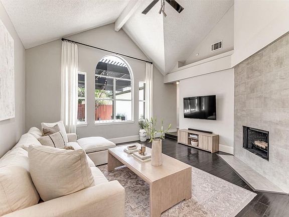 Charming 1-Story Home in the Heart of Frisco moments away from shopping and restaurants with No HOA. Fabulous Curb Appeal with Mature Trees and Crisp White Painted Brick with Dark Trim. Beautiful Wood Floors throughout this Open and Airy Home. Natural light pours into the living room highlighting the Tall Ceilings, Wood Burning Fireplace and Neutral Palette. Adorable Eat-In Kitchen boasts White Painted Cabinets with Black Hardware and Stainless-Steel Appliances. Private Master Suite with Dual Vanities, Garden Tub, Separate Shower with Seat and Custom Built-In Niche. Guest Bedrooms have Walk-In Closets. Hall Guest Bathroom includes White Painted Cabinets with Brushed Gold Hardware, Framed Mirror and Custom Tub Surround. Contemporary Outdoor Living Space includes a Pergola strung with lights and Concrete Pavers. The Electronic Gate expands the Backyard. This house is Turn-Key and ready for a new owner to call it home. Roof 2019. HVAC, Sprinklers and Gutters in 2020.