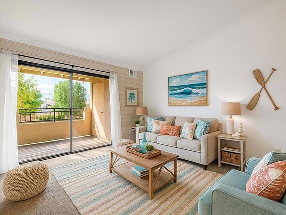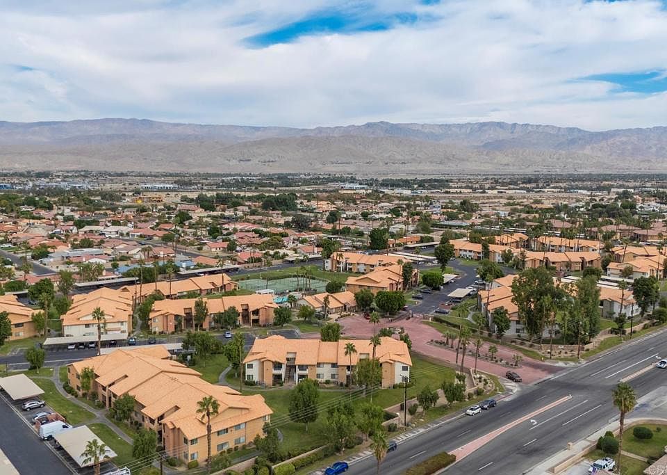 Step into this light, bright unit featuring vaulted ceilings, a private balcony, and an easy, open floorplan that lives larger than its footprint. The unit has been freshly painted and includes a new AC system, new electrical panel, updated bathroom, and all appliances—including washer and dryer—convey, making this a truly turnkey opportunity. Enjoy the convenience of a private laundry room, generous primary walk in closet, 2 dedicated parking spaces, and a prime location just minutes to the I-10, top-rated restaurants, retail shops, PGA West and Indian Wells Tennis Garden. The community offers an array of resort-style amenities including multiple pools and spas, tennis courts, a small fitness center, and a meeting room. HOA fees cover water, trash, exterior building maintenance (HOA scheduled to repaint the exteriors soon), and roof maintenance for worry-free living. Whether you’re looking for a full-time residence, vacation getaway, or investment property, this well-appointed unit is a must-see.
