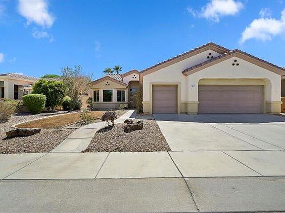 Welcome to Sun City Palm Desert, a premier 55+ gated golf course community. This HUD-owned St. Croix floorplan offers 3 bedrooms and 2 bathrooms with a bright open layout. The spacious primary suite features a walk-in closet, dual vanity, and step-in shower. The kitchen includes an island with a breakfast nook and opens to the living and dining areas, creating the perfect flow for entertaining. Additional features include a two-car garage plus golf cart bay and a private backyard with low-maintenance desert landscaping and a covered patio with ceiling fans, ideal for relaxing and enjoying the outdoors. Residents of Sun City Palm Desert enjoy resort-style living with golf, pools, fitness centers, clubs, and countless activities all in the heart of Palm Desert.
