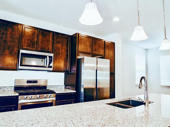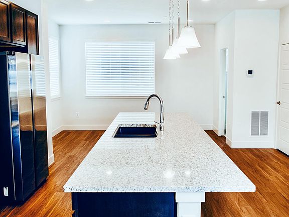 The open floor plan is perfect for those who love to entertain! The main living level includes a large kitchen with an enviable 10-foot granite eat-in island with an under-mount sink and four pendant lights. The kitchen also features gorgeous stainless steel appliances, 5" plank LVP wood flooring, and a built-in pantry.