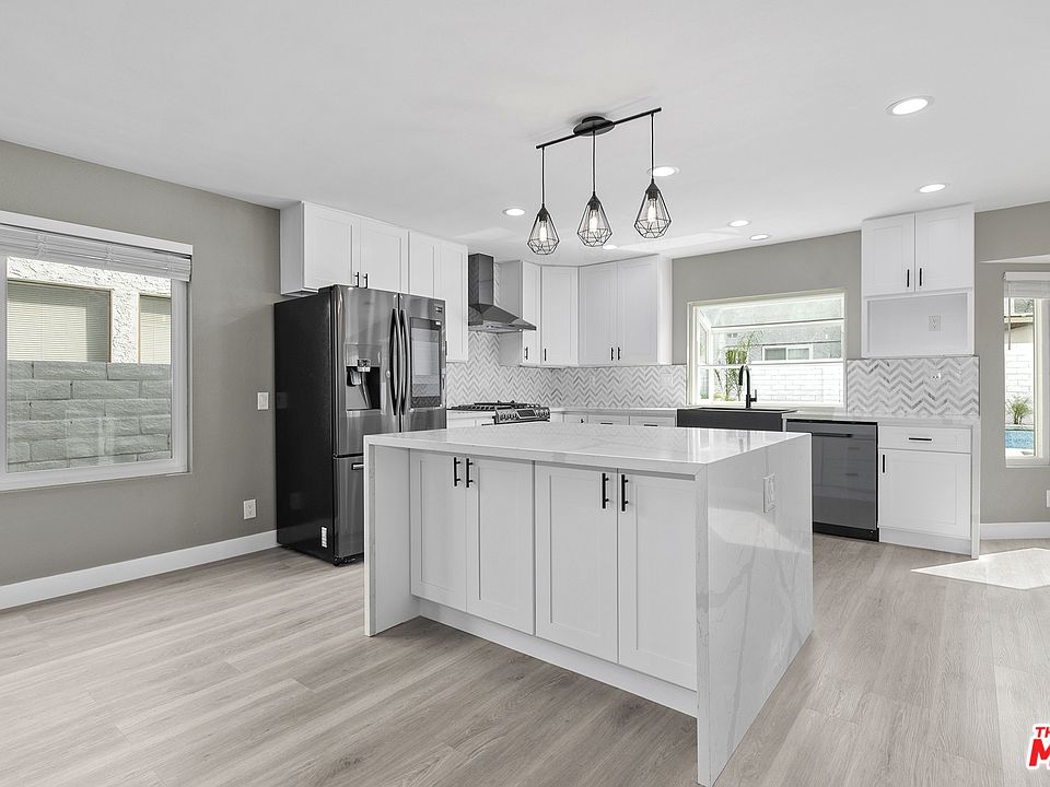 This stunning 3,229 sq ft contemporary home in Winnetka is completely remodeled boasts 4bd/2.5 ba, loft & family room. Step down formal living room includes a Venetian plaster wall feature an open-concept floor plan. Spacious kitchen w/large double waterfall edge island, Quartz counter tops, white shaker cabinets, faucet w/gorgeous Matte Black Farmhouse sink & top of the line Samsung appliances. Master Suite has its own 3D tiled fireplace private balcony, walk-in closet, lavish private bath w/jet tub that has LED Chromatherapy lighting, waterfall feature, & attached hand shower, over-size curbless shower w/ rainfall head/body sprayer jets and custom bench. All bathrooms have floating vanities and LED mirrors w/built-in defrosters and Bluetooth. The backyard is an entertainers dream w/built in fire pit, immaculate sparkling pool w/Baja shelf, fire fountains & LED waterfalls, spa & tons of privacy. See documents for more details.