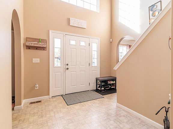OPEN HOUSE Sunday 9/29, 2-4. The perfect combination of space, style & location make this your perfect place to call home. This home features arched doorways, crown moldings, a 2-story Foyer, private Flex Rm (Den/Living Rm.), Dining Rm w/ newer high-end wood laminate floor, 1st floor Laundry Rm & large, comfortable Great Rm w/ fireplace. Fabulous Kitchen has an island w/ prep sink, built-in desk, lg pantry & newer black stainless appliances. 4 large upper level BRs, including the Owner's Ste w/ vaulted ceiling & plant ledge, lg vanity, soak tub, toilet room w/ shower & 2 walk-in closets. Full Basement w/ rough-in for full bath & built-in storage shelves. Sideload 2.5 car Garage. Large Deck & tree-lined yard. NEWER carpet, paint, lighting, sump pump, humidifier. Close to US 23 and Polaris.