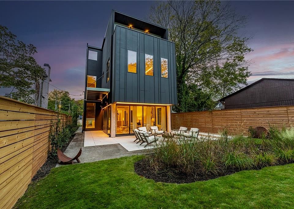 Stunning Brand-New Modern Home just Steps from the Beltline in Virginia-Highland 5 Bedrooms | 4.5 Bathrooms | 4 Levels | Rooftop Deck | Private Fenced Yard Perfectly positioned just steps from the Beltline, Ponce City Market, and Virginia-Highland, this striking new modern home blends architectural sophistication with warm, livable design. Spanning four finished levels, it offers a rare balance of luxury, light, and functionality in one of Atlanta’s most walkable neighborhoods. The open main level welcomes you with wide-plank oak flooring, 11-foot ceilings, and a seamless flow between the living, dining, and kitchen areas. The dining room is framed by floor-to-ceiling windows and elegant brass fixtures, while the chef’s kitchen features a large island, custom cabinetry, Dekton porcelain countertops, and matte black finishes. The kitchen is equipped with a 36-inch Z-Line dual-fuel range with six sealed Italian burners, a Sharp 24-inch microwave drawer, and a GE dishwasher. Both the main living area and the top-floor bonus room are pre-stubbed for fireplaces. Expansive sliding glass doors connect the interior to a private, fenced backyard, creating effortless indoor-outdoor living. The patio features sleek concrete finishes and landscaped greenery, offering a tranquil retreat with alley access for added convenience. Upstairs, the primary suite serves as a private sanctuary with oversized windows, a spa-inspired bath, soaking tub, and glass-enclosed shower. Additional bedrooms and bathrooms are spacious and bright, designed with clean lines and modern fixtures. The lower level provides a flexible space ideal for a guest suite, gym, or media room, complete with a built-in wet bar and extra storage. The top floor adds a fifth bedroom and full bath, along with a large bonus room featuring a full wet bar and direct access to a rooftop deck perfect for entertaining. From here, enjoy views of the tops of city buildings surrounded by lush trees and the beautiful Virginia-Highland neighborhood landscape. Highlighted Features: 5 bedrooms, 4.5 bathrooms across four thoughtfully designed levels 11-foot ceilings on main, 10.5-foot ceilings on bedroom level Chef’s kitchen with Dekton porcelain countertops, custom cabinetry, and premium appliances Dining room with floor-to-ceiling windows and designer lighting Seamless indoor-outdoor living with sliding doors to private fenced backyard and patio Professionally landscaped yard with alley access Spa-style primary suite with soaking tub and glass shower Lower-level flex suite with wet bar and storage Top-floor fifth bedroom, bonus room, and full wet bar with rooftop deck access Rooftop views of treetops and the tops of city buildings Driveway parking and architectural exterior lighting Steps from the Beltline, Ponce City Market, and Virginia-Highland 787 Bonaventure Avenue combines striking modern architecture with natural warmth and thoughtful functionality, offering the best of design and location in the heart of Atlanta’s most vibrant community.