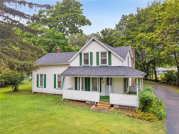 Welcome to 787 Dewitt Road in Webster. Unique opportunity to update and make it your own! This farmhouse-style home includes 4 bedrooms and 2 full bathrooms. The property offers an open porch and an enclosed porch for use across the seasons. Exterior features consist of vinyl and wood siding, a deck, and a blacktop driveway leading to an attached garage with room for parking and storage. The interior provides a kitchen that connects to the dining and living areas. The first floor also contains a full bathroom and additional space suitable for family use, office, or guests. The second level has four bedrooms and another full bathroom. Windows throughout the home provide natural light, and the layout accommodates a range of room arrangements. The lot includes front and rear yard areas suitable for outdoor activities, gardening, or recreation. Located in Webster, the property is close to schools, shopping, parks, and main roadways for commuting. Delayed negotiations September 9th, 2025 at 12:00 PM.