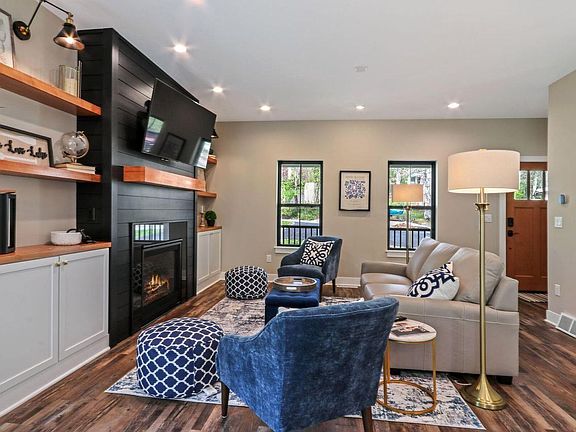 Completed in 2022, this stunning modern farmhouse style home offers the coveted Lake Geneva lifestyle. Situated on a mature, tree-lined lot, this open-concept home is defined by attention to detail and high-end finishes. The gorgeous kitchen features a center island and flows seamlessly into the great room, highlighted by a striking gas fireplace and built-ins. Retreat to the primary suite, which boasts a huge walk-in closet & a spa-like ensuite with double vanity. With 2 additional bedrooms, this home is ready for family and guests. Outside, enjoy the tranquility of your private yard from the deck or gather around the fire pit. Best of all, this home is completely furnished and turnkey- move in, rent it out, or enjoy it as your weekend escape immediately! Some photos virtually enhanced.