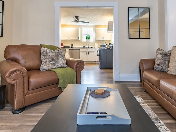Welcome to your home away from home in downtown Columbus. This charming, smoke-free, 3-bedroom 2 bath home, offers a total of five comfy beds, including 2 queen beds in two separate bedrooms, a 3rd bedroom with two twin beds, and a queen sleeper sofa in the living room. The exterior includes a yard and porch, providing outdoor space for leisure. Additional amenities include air conditioning, a security system, and high-speed internet access. TVs are featured in every room, and lightning-fast Wi-Fi throughout to keep everyone connected. Settle in to your work day in the home office, or gather for fun with a game of ping pong, cards, or board games in the beautifully designed living room with leather sofas and oversized chair. The fully equipped kitchen and spacious dining room make family meals and connecting a delight. Just minutes from Nationwide Children's Hospital and downtown, our pet-friendly haven is ideal for families and professionals alike.