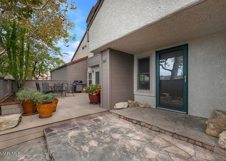 Premium location in Hidden Canyon! End unit with the largest patio and sunset views of the mountains. This highly sought after 2 bed 2 bath floor plan boast a ground floor primary bedroom with a renovated bathroom complimented with oversized shower & travertine tiles along with a private patio dressed with custom paver. The secondary bedroom is upstairs with tremendous privacy and ensuite bathroom. This home has many upgrades including oversized patio with newer deck and custom stone pavers with brick flower beds. The large open floor plan has hardwood hickory floors throughout, granite lined fireplace, double pane windows & perfect for the avid entertainer. The remodeled galley kitchen is open to the dining and family room and features granite counter tops, bosch five burner cook top and a bosch refrigerator along with recessed lighting. 2 car direct access garage along with being in close proximity to one of the larger swimming pools and jacuzzi in the neighborhood.