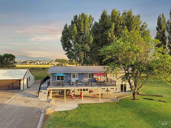 Wowza! Your own private country retreat. Nestled down a private lane, this home offers the perfect blend of peace, privacy, and panoramic beauty. Surrounded by rolling hills and a charming vineyard. Watch the gorgeous Idaho sunsets from the spacious deck-perfect for sipping morning coffee or entertaining under the stars. Inside you’ll find a beautifully maintained home with warm, inviting interiors. Large windows bring the outdoors in, filling the home with natural light. Cook in this newly updated kitchen and relax in the extra large master suite with a bonus attached solarium. Stretch out and relax in the two large living room areas and enjoy the plentiful storage options available inside and out. There are several bonus spaces with many possibilities, including an office and conservatory. The yard is incredible, with a shop, outbuildings and sitting on 2.3 acres this property is perfect for any hobbyist.