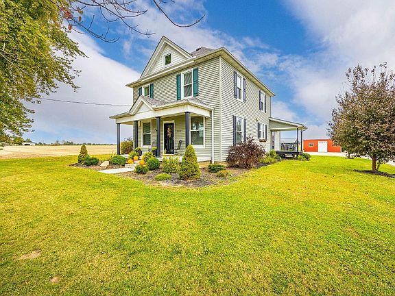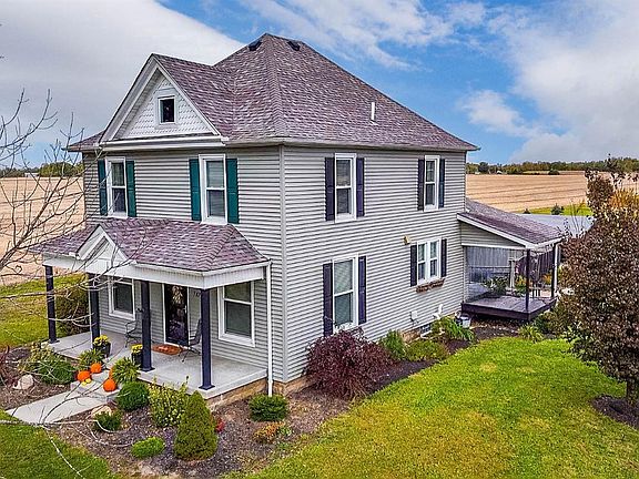 Beautifully remodeled farmhouse set on 7 scenic acres surrounded by open farmland. Complete 2020 renovation includes new windows, roof, siding, HVAC, and furnace. Gleaming hardwood floors throughout. Property features two large barns and a picturesque pond the, perfect blend of charm, function, and rural tranquility.