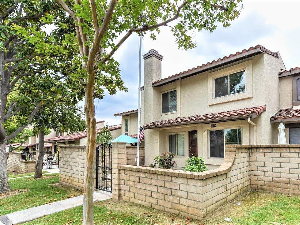Wonderful 2 story condo in the Marlborough Villas Community in Rancho Cucamonga with 3 bedrooms, 2.5 baths, attached 2 car garage and its own private front patio! It sits in the heart of the community, only steps away from the community pool and tennis courts. The gated private front patio of this great condo greets you and is the perfect space for lounging with your favorite drink and gardening. Upon entering the home you'll find the cozy living room with brick fireplace and formal dining area. Not to mention the NEW interior paint throughout! The dining room, family room, and 2 bedrooms boast NEW ceiling fans. The kitchen features upgrades including NEW quartz counter tops, stainless steel stove, dishwasher, microwave, kitchen faucet and stainless sink. Adjacent to the kitchen is a dining area along with family room space. On your way upstairs you'll notice the NEW pendant light at the stair landing. The master bedroom awaits with dual his and hers closets and its own private bath featuring dual sinks. Enjoy the beautiful scenery of the community with lush, mature trees throughout and its amenities which include pools, spa, tennis courts, dog park, BBQ & picnic area and clubhouse. Conveniently located with easy access to 210 and 15 freeways, shopping centers and just a short drive away from Victoria Gardens and Ontario Mills shopping malls. This condo is such a great find! Don't miss the opportunity to make it yours! Square footage not taped, buyer to verify.