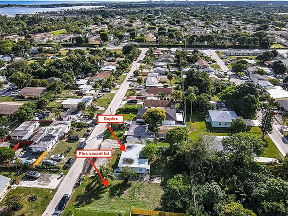 This partially renovated duplex presents a compelling investment opportunity with immediate rental income and long-term development potential. Constructed of durable CBS, the property features a newer roof installed in 2024 and is zoned multi-family medium density, allowing for up to five units. What appears to be a vacant lot next door is actually part of the property, offering additional land for future expansion or redevelopment.One unit has been moderately renovated with updates that include laminate flooring and appliances. The second unit has been fully renovated and professionally staged. It features updated kitchen cabinetry with a snack bar and is currently operating as a successful short-term rental, creating an attractive opportunity for diversified income streams.The property is equipped with two separate electric meters and one water meter, supporting ease of management for multiple units. With its combination of current cash flow, recent improvements, flexible zoning, and additional land, this duplex is well-suited for investors seeking both immediate returns and future development upside in a highly visible area close to beaches, PBIA and extensive dining and entertainment opportunities within minutes.